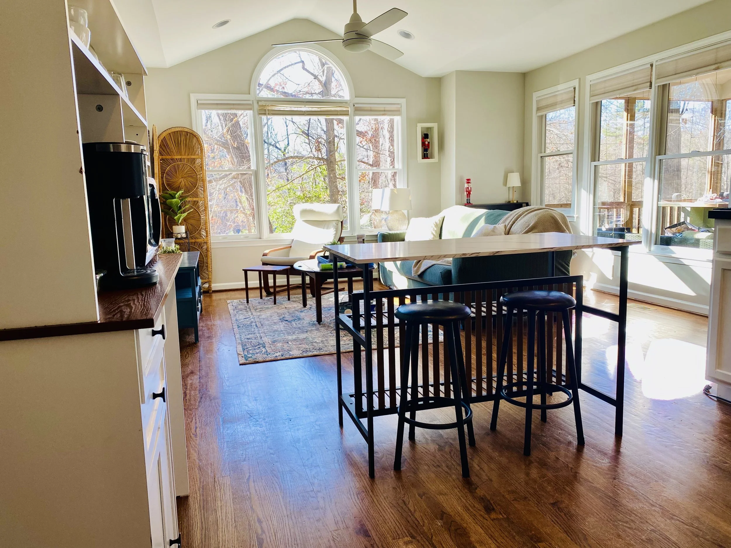 This is a 1 bedroom, 1 bathroom apartment conversion located in Raleigh, NC. The home is a 1700 sq. ft. single-family ranch home that we divided into 2 apartments. For this apartment, we created a new kitchen area by installing apartment-sized appliances and stock cabinets into a corner nook.